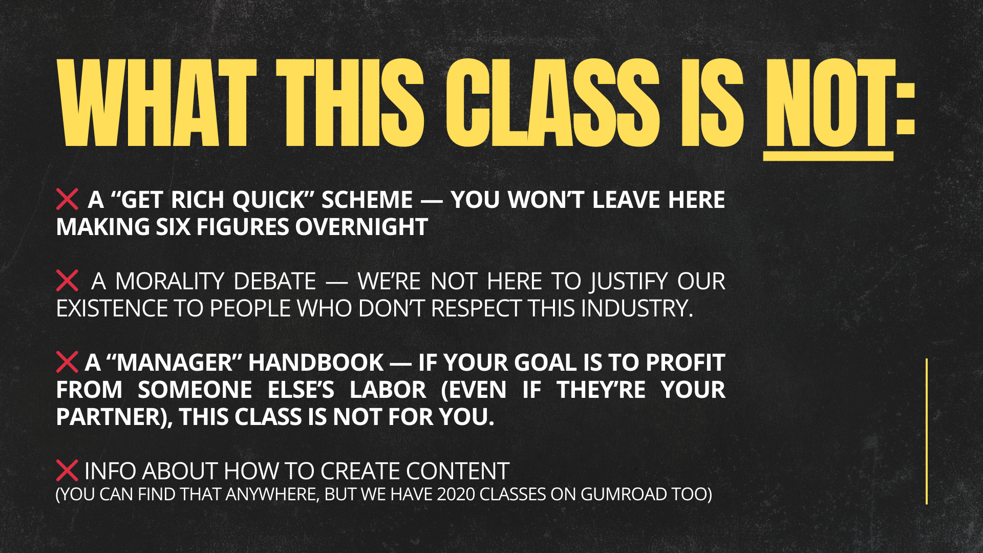 It’s designed for the spicy industry, but useful for anyone monetizing personal content. The examples are specific to adult creators because that’s where the gaps in education are, but the business principles apply to any independent creator or performer.